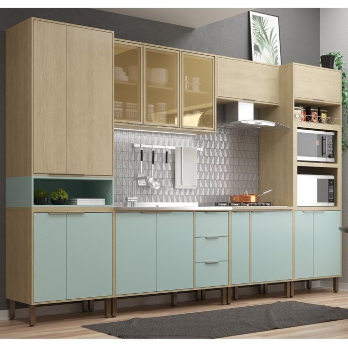 Cozinha Modulada 6 Peças 2 Balcões 2 Armários Aéreos 2 Paneleiros Karine Carvalho/Pistache