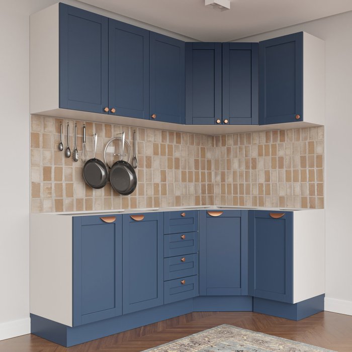 Cozinha Modulada 6 Peças com Tampo 3 Aéreos 6 Portas e 3 Balcões Arizona CabeCasa MadeiraOriginals Branco/Azul