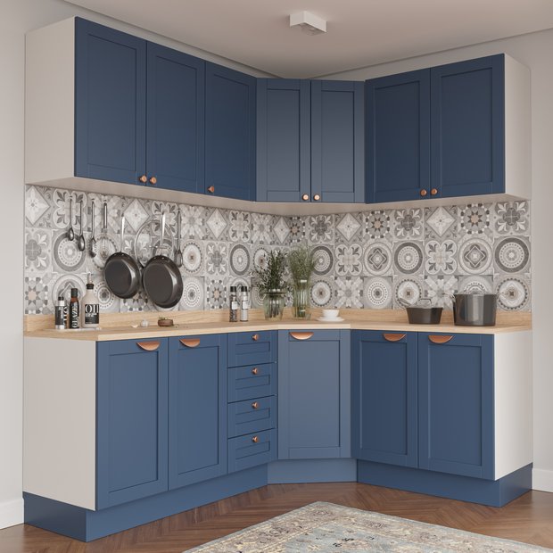 Cozinha Modulada 6 Peças com Tampo 3 Aéreos e 3 Balcões Arizona CabeCasa MadeiraOriginals Branco/Azul