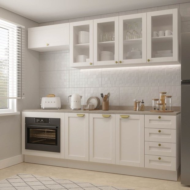 Cozinha Modulada 6 Peças com Tampo, Portas de Vidro e Balcão para Forno CabeCasa MadeiraOriginals Branco