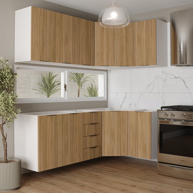 Cozinha Modulada 6 Peças sem Tampo 3 Aéreos 6 Portas e 3 Balcões Ipanema CabeCasa MadeiraOriginals Acácia