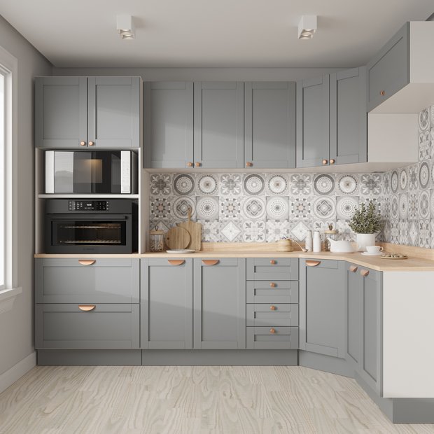 A Cozinha Modulada Arizona com tampo é formada por 3 Aéreos 3 Balcões e 1 Torre Quente, as portas e frentes de gaveta são feitas em MDF e possuem acabamento em Finish Foil com dobradiças com amortecimento, possibilitando fechamento soft closing. Possuem fita de borda em PVC, conferindo alta durabilidade e proteção contra umidade ao móvel.