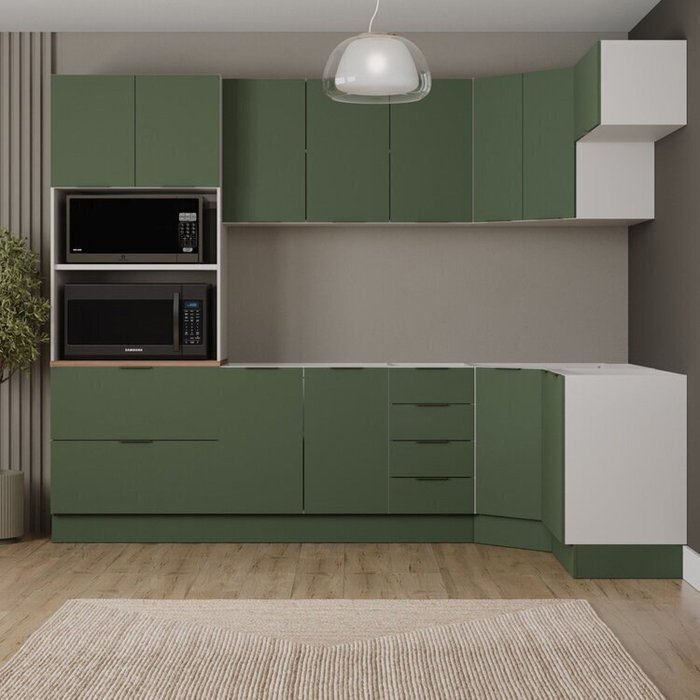 Cozinha Modulada 7 Peças sem Tampo com Rodapé Ipanema CabeCasa MadeiraOriginals Verde Folha