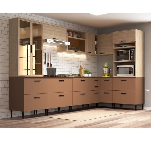 A Cozinha Modulada 8 Pecas Barbara é composta em MDP, acabamentos em Pintura UV e Finish Foil, puxadores em aluminio na cor Preto, pes plasticos com regulagem de altura. Estao disponiveis em modulos, com Cristaleira 4 portas sendo 2 portas em MDF com Vidro Reflecta e 2 portas basculantes com pistao gas, kit forno/micro 3 portas , balcao de pia 3 portas e 2 gavetas, aereo 2 portas sendo 1 basculante em MDF com Vidro Reflecta, balcao canto reto, aereo canto reto, aereo 80 cm, balcao 80 cm com 2 portas basculantes , permitindo projetos exclusivos, conforme o espaco do consumidor. Projetada para proporcionar praticidade e funcionalidade no uso diario. Todo o projeto foi pensado para embelezar sua cozinha com muita praticidade no uso e muita qualidade e durabilidade no dia a dia.