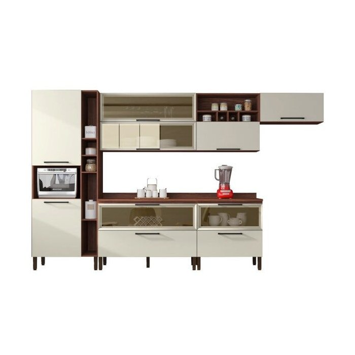 Cozinha Modulada 8 Peças Viv Concept C06 Nogueira/Off White - Kit´s Paraná