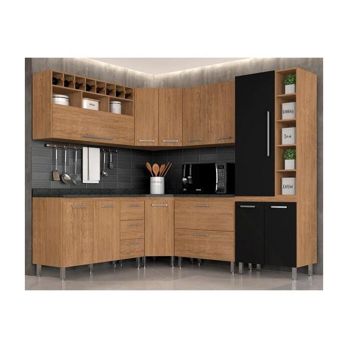 Cozinha Modulada Amabile 7 Peças Carvalho/ Preto - Móveis Arapongas Carvalho Americano/preto