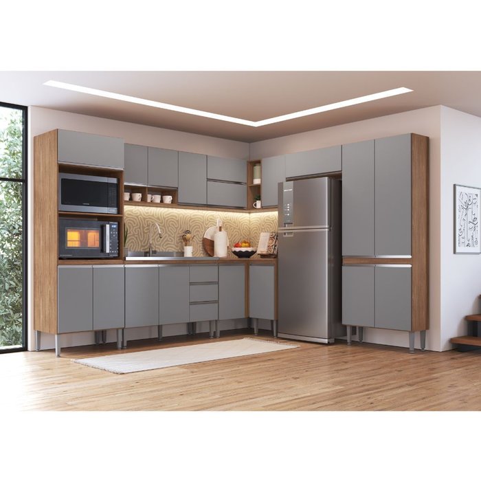 Cozinha Modulada Canto 9 Peças Athena Freijó Cinza Megasul
