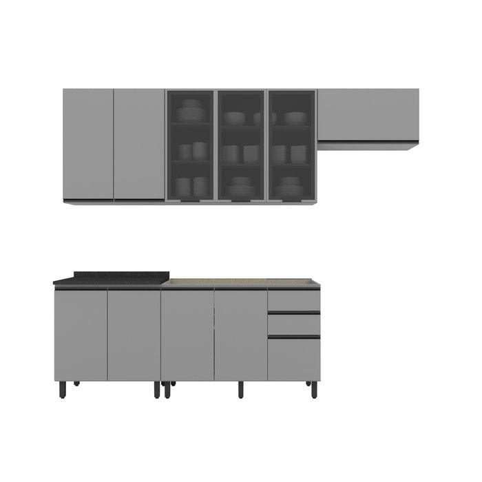 Cozinha Modulada Cerejeira Completa 5 Peças Sem Tampos Cinza - Bela Móveis