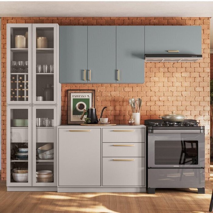 Cozinha Modulada com Cristaleira 4 Peças Essence 100% Mdf Itatiaia Fendi/Gris