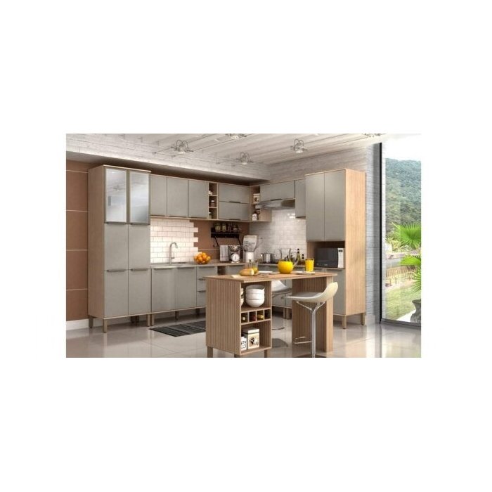 Cozinha Modulada com Ilha Gourmet 13 Peças Verace Espresso Móveis