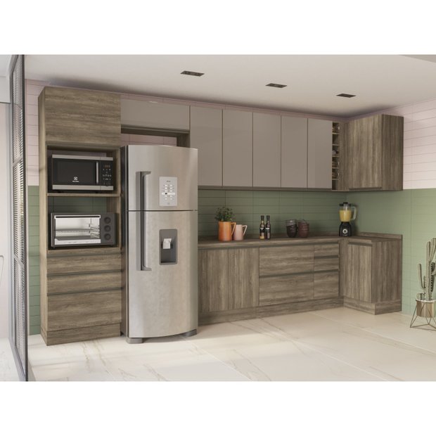 Para você que procura uma cozinha perfeita para preparar suas refeições em um ambiente prático e agradável, sem perder o bom gosto, a Kappesberg apresenta a cozinha Maxxi. Disponível nas cores Nogal com pintura touch, essa cozinha conta com espaços otimizados, facilitando o seu dia-a-dia. Possui puxadores de alumínio, corrediças telescópicas e módulos com vidro bronze, tornando o seu ambiente ainda mais bonito. Esse conjunto com 8 peças é uma excelente opção para a sua cozinha, pois conta com ótimo espaço interno que permite fácil organização de seus utensílios e alimentos.