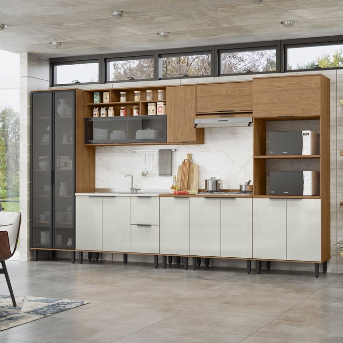 Cozinha Modulada Completa 8 Peças Lombardia Freijó Off White Freijó Off White