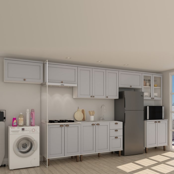 Cozinha Modulada Completa com Aérea de Serviço Integrada 100% Mdf com Tampo Impermeável