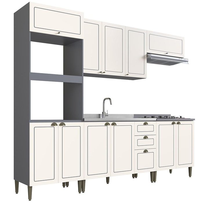 Cozinha Modulada Completa e Tampa Cooktop Édez Neuf, 6 Peças MDP, 270 cm Branco Nevada e Grafite