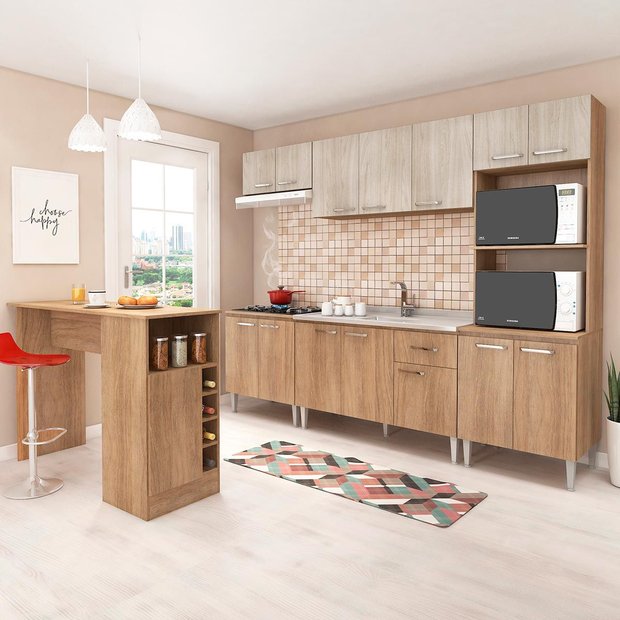 Cozinha Modulada Completa Max 262 Cm Balcão Pia Bancada Ilha Armário Mdp Carvalho Blanche - Clicklar Carvalho e Blanche