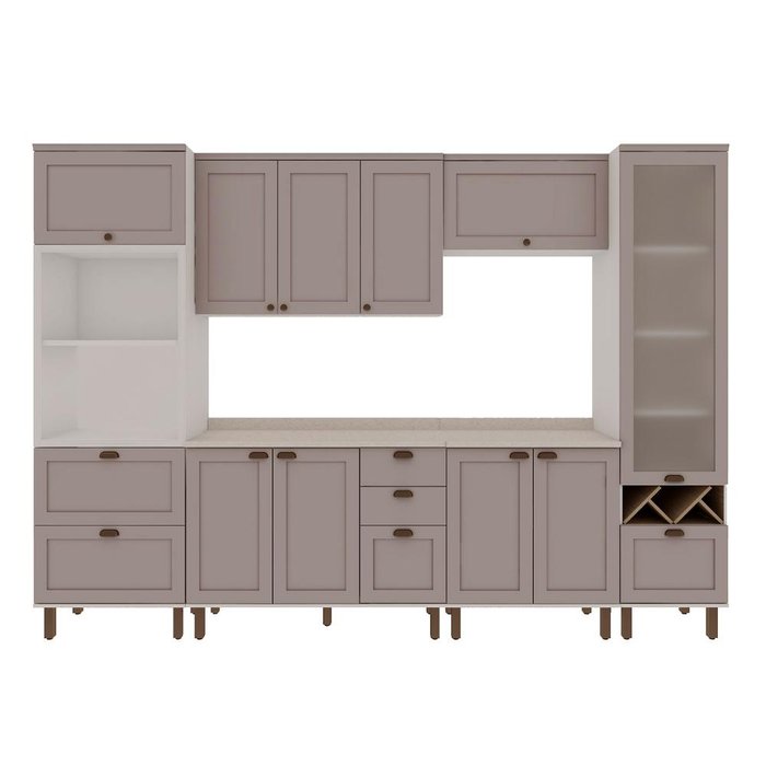 Cozinha Modulada Cristal 320 Cm Conjunto Provençal Completo Cor:fendi com Branco