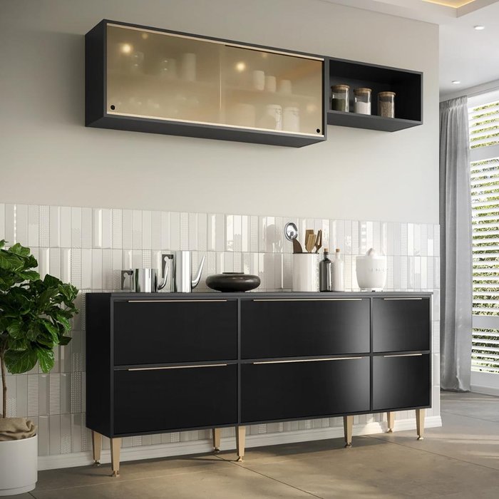 Cozinha Modulada Decor 3 Peças Trevalla 7 Portas 1 Gaveta Branca/Preta