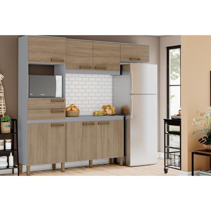 Cozinha Modulada Henn Briz Star 4 Peças (2 Armários + 1 Balcão + 1 Paneleiro) CPT95 Cinza/Rú Cinza/Rústico