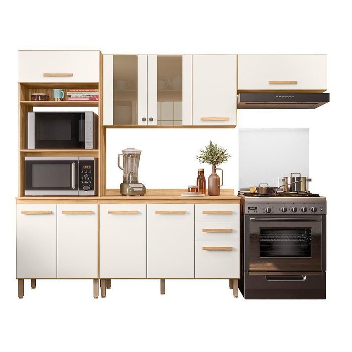 Cozinha Modulada Intenza Madre 4 Peças Freijó/off White Cristal - Nicioli Freijó/Off White Cristal