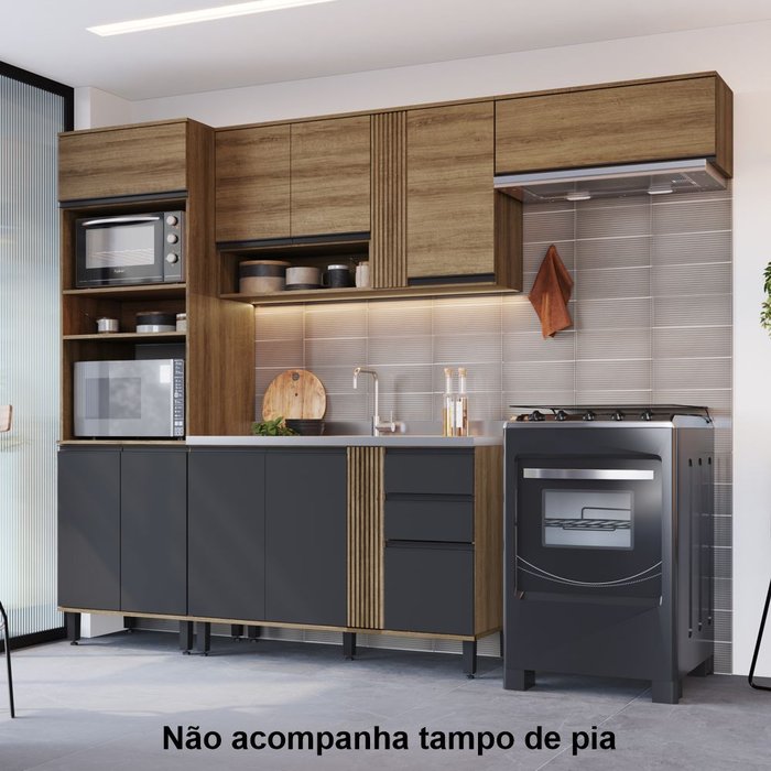 Cozinha Modulada Laura 263cm 10 portas 02 gavetas LA0030 Delmarco - Delmarco Mel/Preto Touch Delmarco Mel/Preto Touch