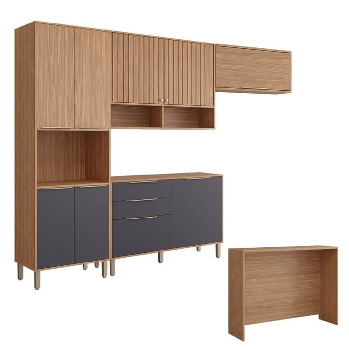 Cozinha Modulada MGM Divina 5 peças com Bancada - Freijó/Titanium Freijó/Titanium