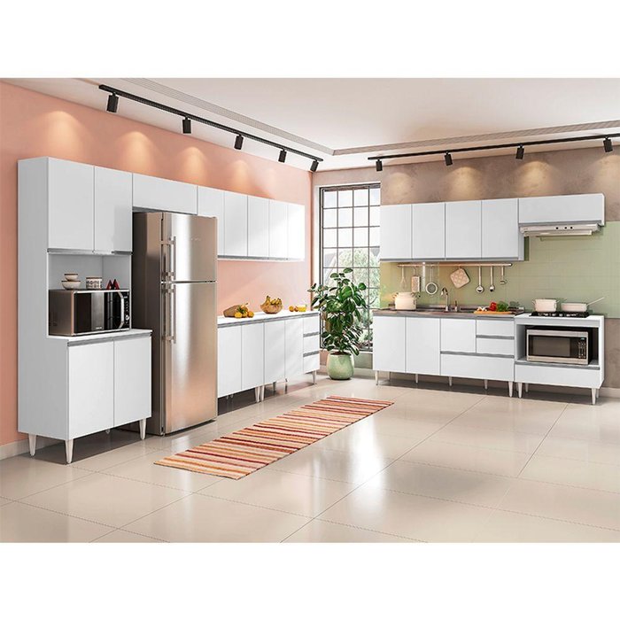 Cozinha Modulada Milla 11 Peças Branco Puxador Aluminio Branco