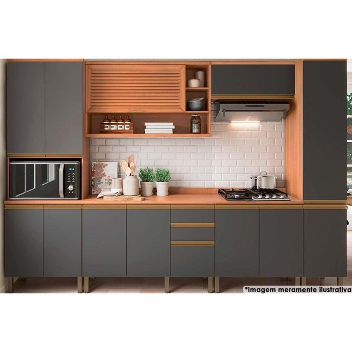 Cozinha Modulada Telasul Thela Macadâmia Thela Macadâmia 6 Peças (2aéreos+2balcões+1paneleiro) Freijo/Grafite