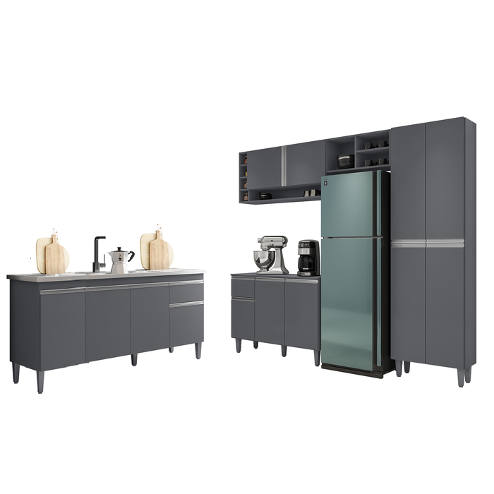 Cozinha Modulada Vanessa com Balcão para Pia 150mt Tatiane sem Tampo Cinza Ajl