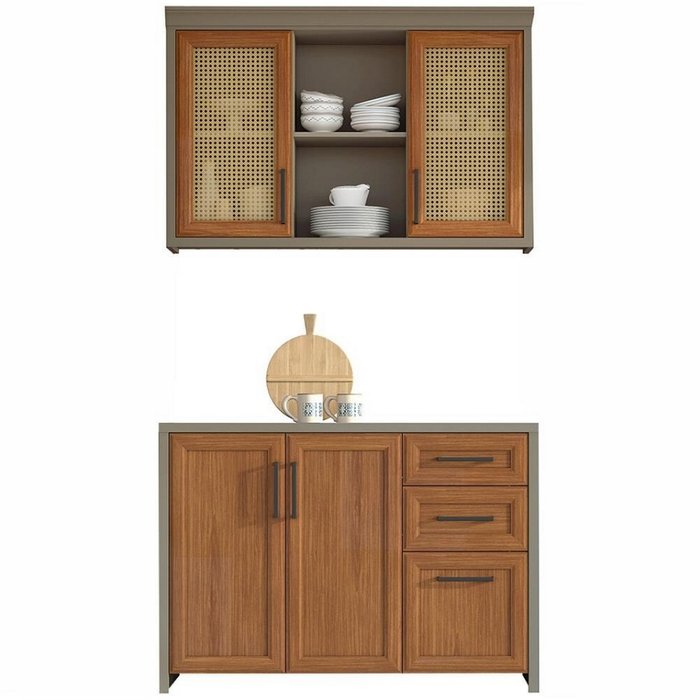 Cozinha Nesher Camponesa 4 Portas 3 Gavetas e 8 Prateleiras Fendi com Freijo