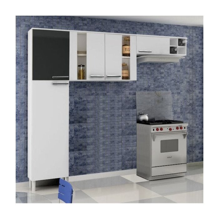 Cozinha Palmeira Ratan 03 peças - Sugestão 01 - Branco Preto Branco Preto