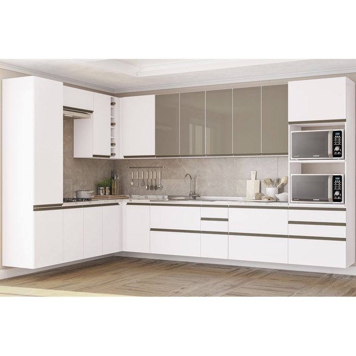 Cozinha Planejada Completa Maxxi 368x229cm 16 peças CJ43014-135 Kappesberg - Branco Branco