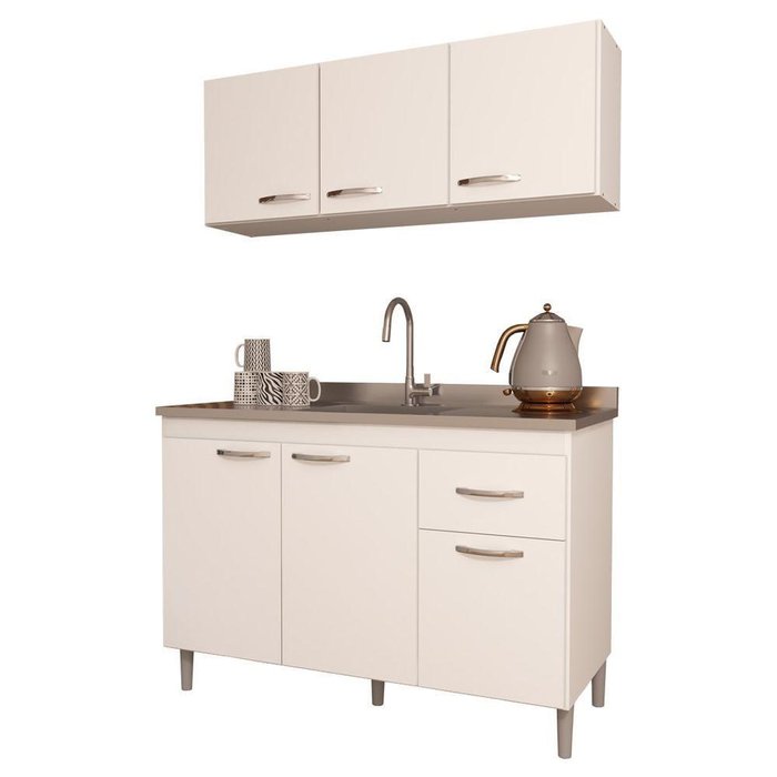 Cozinha Pop 1,20 Armário Aéreo E Balcão De Pia Branco O melhor custo-benefício a sua disposição!