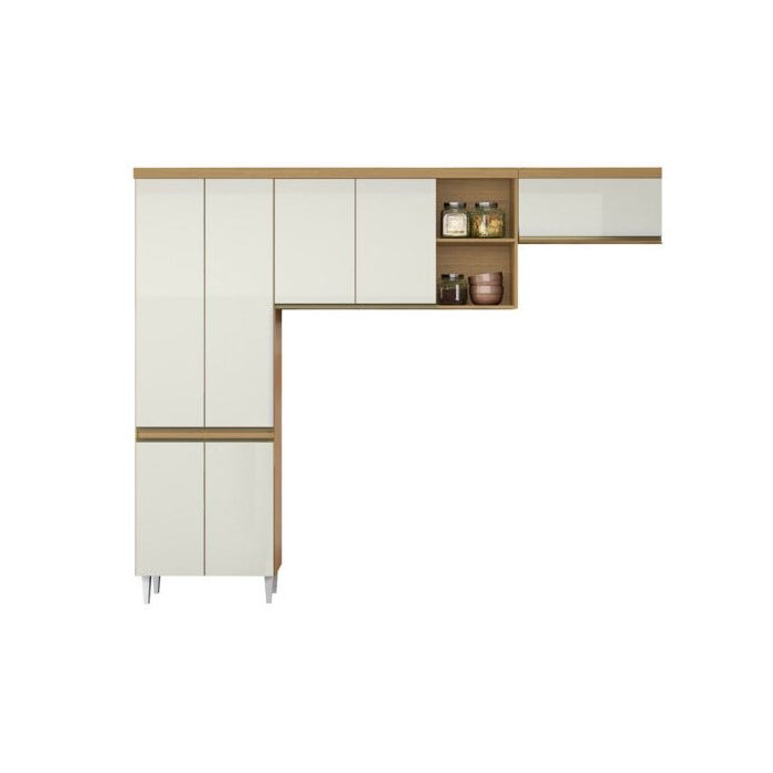 O Armário de Cozinha Completa Sophia é composto por paneleiro duplo e armários aéreos com prateleiras amplas para guardar todos os seus utensílios e melhor aproveitar o seu espaço. Confeccionado com materiais de alta qualidade que oferece ao móvel beleza, resistência e durabilidade. Sua cozinha ficará ainda mais sofisticada!
