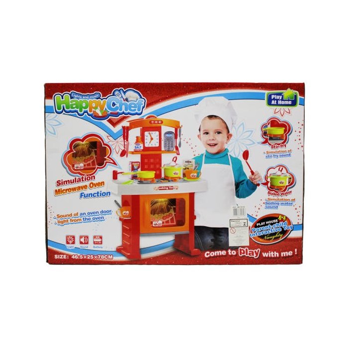 01 Cozinha Super Infantil com Som,Luz e Forninho, 02 Pratos, 02 Xícaras, 06 Talheres, 01 Pegador, 01 Torneira, 01 Panela com Tampa, 01 Frigideira, 03 Alimentos, 01 Celular.