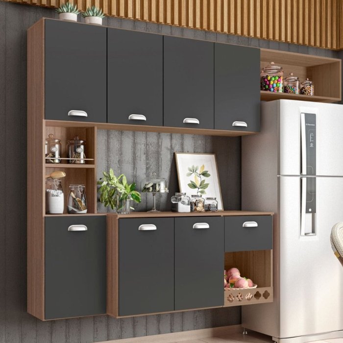 Cozinha Suspensa 7 Portas 1 Gaveta Mila Carvalho/Grafite