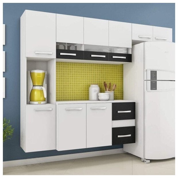 Cozinha Suspensa 9 Portas 2 Gavetas Angra Espresso Móveis Branco/Preto