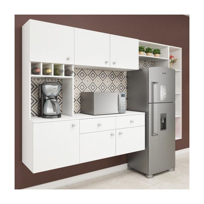 Cozinha Suspensa Itapuã 6 Portas e 2 Gavetas com Nicho - Mdp - Branco(pnr Base)