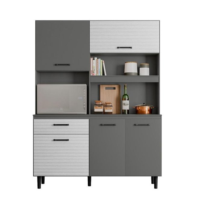 Cozinha Zeus 140 5 Portas 1 Gaveta Chumbo/Chumbo/Ripado Cinza - FdECOR Chumbo/Chumbo/Ripado Cinza
