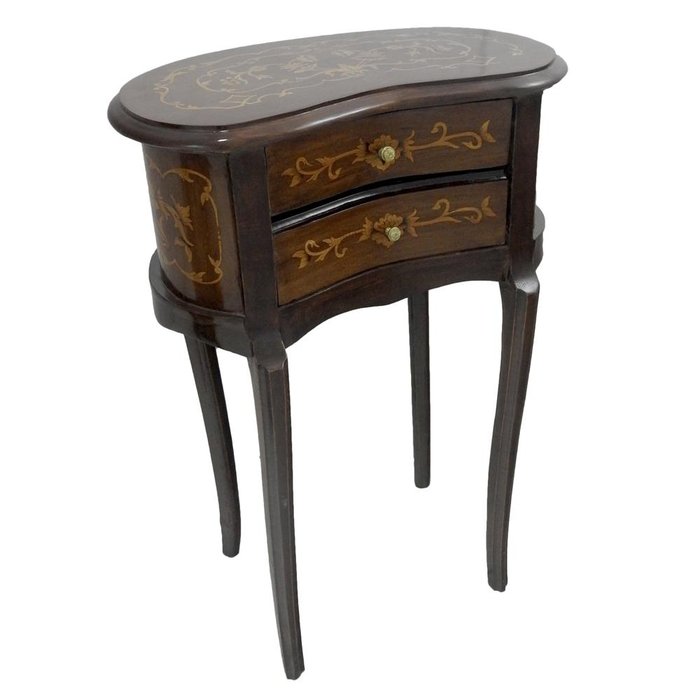 Criado Mudo Clássico Luis XV Marchetado 2 Gavetas Verniz