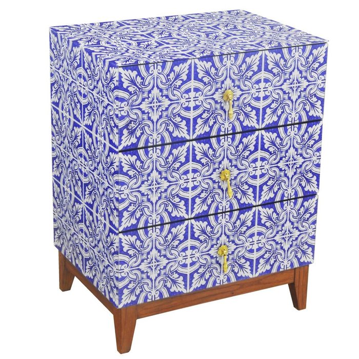 Criado Mudo Em Madeira Com Revestimento em Vidro Azul Colorido