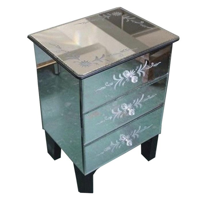 Criado Mudo Espelhado Vidro Veneziano 3 Gavetas 61x36x44 cm Espelhado