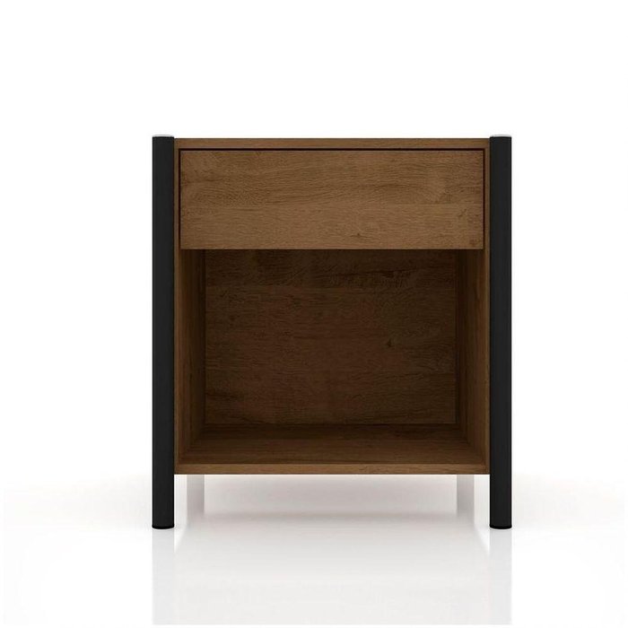 Criado Mudo - Mesa De Cabeceira Com Gaveta Em Mdp E Aço De Carbono Preto/ Demolição Ara Preto/ Demolição