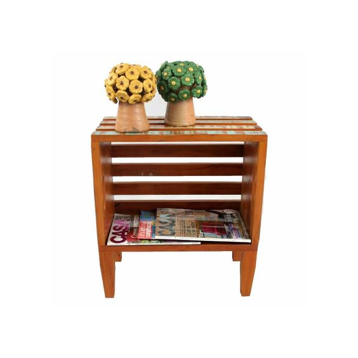 Um criado básico, mas com muitas funções, cabe em qualquer cantinho e além de ajudar organizar o espaço promete dar um ar descontraído para o ambiente. O fato de ser produzido todo com retalhos de madeira não o deixa com uma estrutura frágil pelo contrario, ele é bem rígido e suporta bem peso.