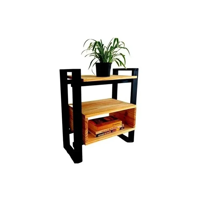 Criado Organizador Mesa de Cabeceira Nicho Prateleira Madeira Suporte Decorativo Multiuso Estilo Ind