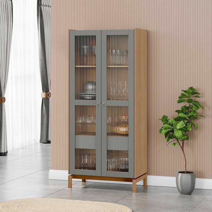 Cristaleira 1,80 2 Portas 1 Gaveta Barcelona Madeira Maciça 2157vz Oak Ferrolack Finestra Oak
