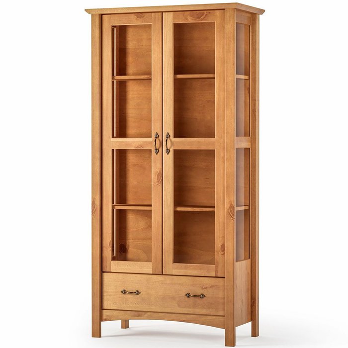 Cristaleira 100% Madeira Maciça com 2 Portas 1 Gaveta Stella - Castanho Fosco Castanho Fosco