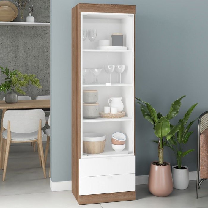 Cristaleira 2 Portas 2 Gavetas Castanho/branco Bh 06 - Brv Móveis