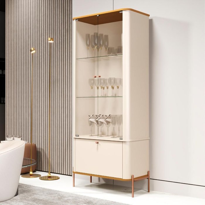 Cristaleira 2 Portas Baton Rouge Off White Nature Bronze