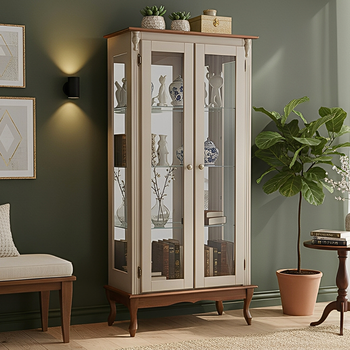 Cristaleira 2 Portas com Puxador Bolinha e Pés Luiz Xv Meyer - Amêndoa com Tampo e Base Imbuia Glaze