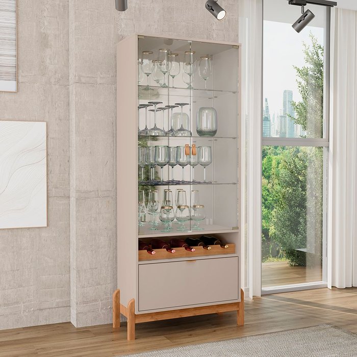 Cristaleira 2 Portas de Vidro Bari Off White/Cedro